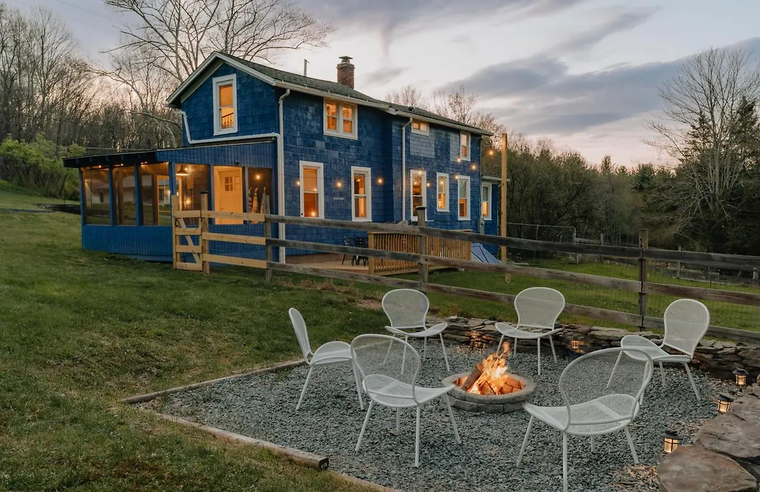 La 1930'S Vintage Cabin Hot Tub Kohler Cabin Jeffersonville, situada a una distancia de 2 km del Parque Histórico del Puente de Arcos de Piedra, cuenta con un patio con vistas a las montañas.
